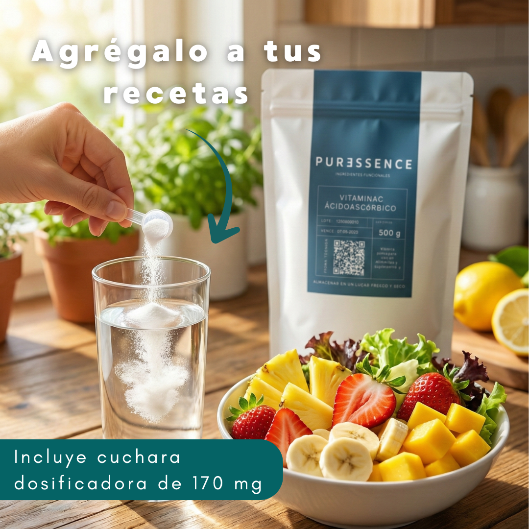 Haz de esta Vitamina C pura tu aliada diaria para apoyar tu bienestar y la calidad de tus preparaciones. Añádela hoy mismo a tu carrito y experimenta la diferencia de un ingrediente funcional de alta pureza.