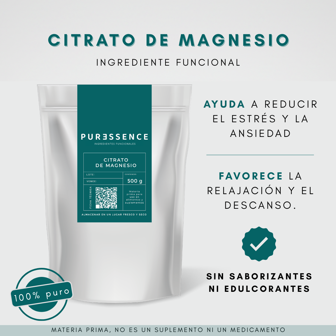 • Citrato de magnesio 100% puro, sin aditivos, saborizantes ni edulcorantes.